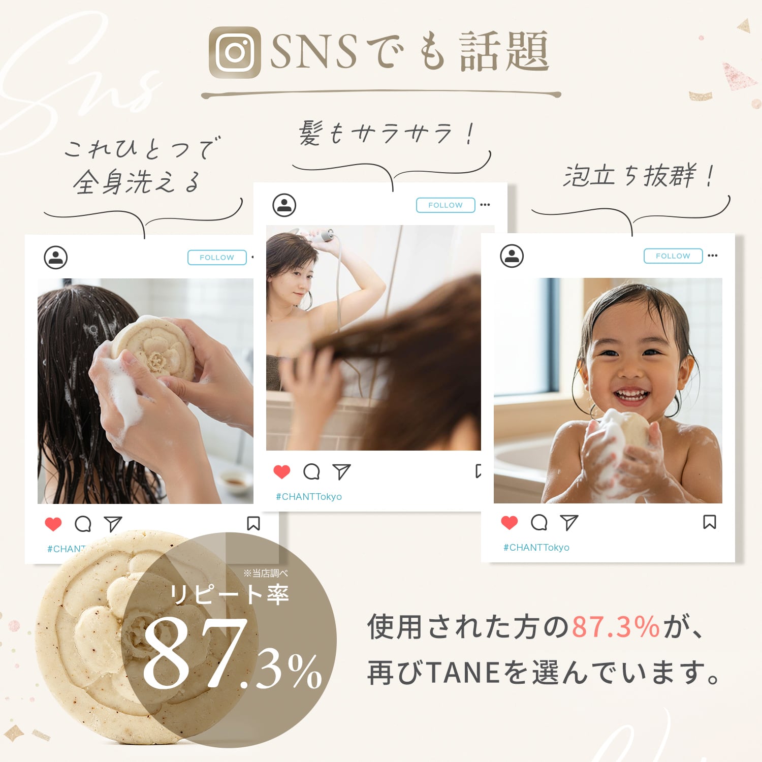 TANEは、毎日のバスタイムをもっとシンプルに、もっと心地よくするために生まれた全身用の固形シャンプー。